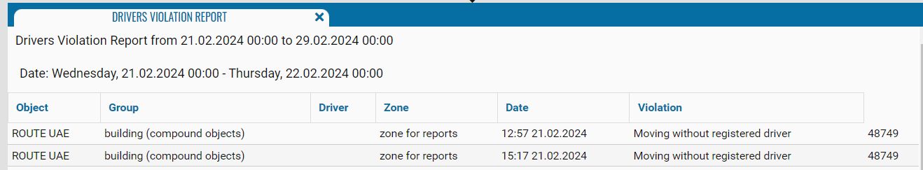 The report is designed to display driver violations of rules in a geofence.