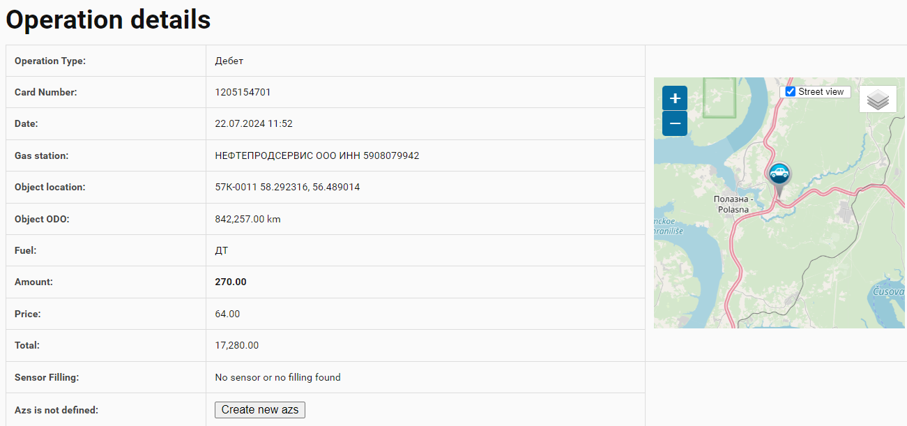 • The "Gas station" column allows us to determine whether the object's coordinates correspond to the coordinates of the gas station +- 100 meters.