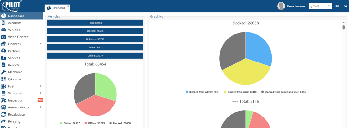 Tab bar - designed for working with contracts, objects, reports, recalculations and other actions.