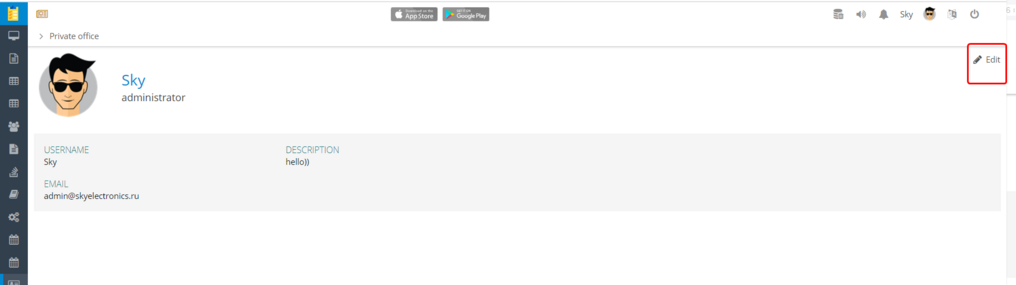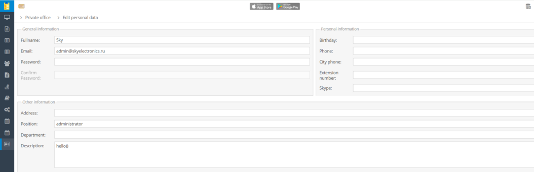 Personal account settings window.