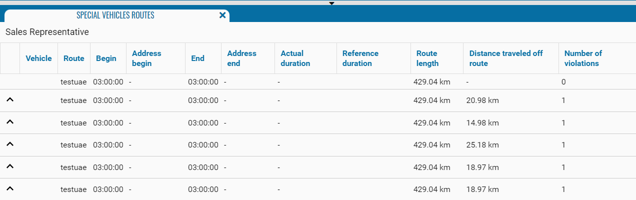 • Number of violations - the number of violations on the route.