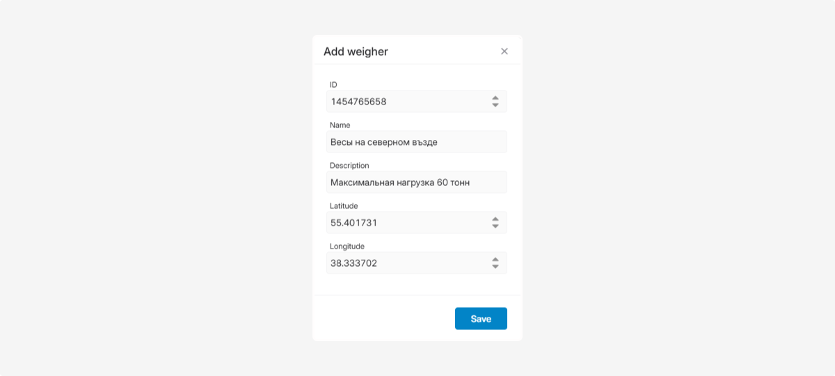 Latitude and Longitude — Coordinates of the weighing sensor's location4. Click "Save."