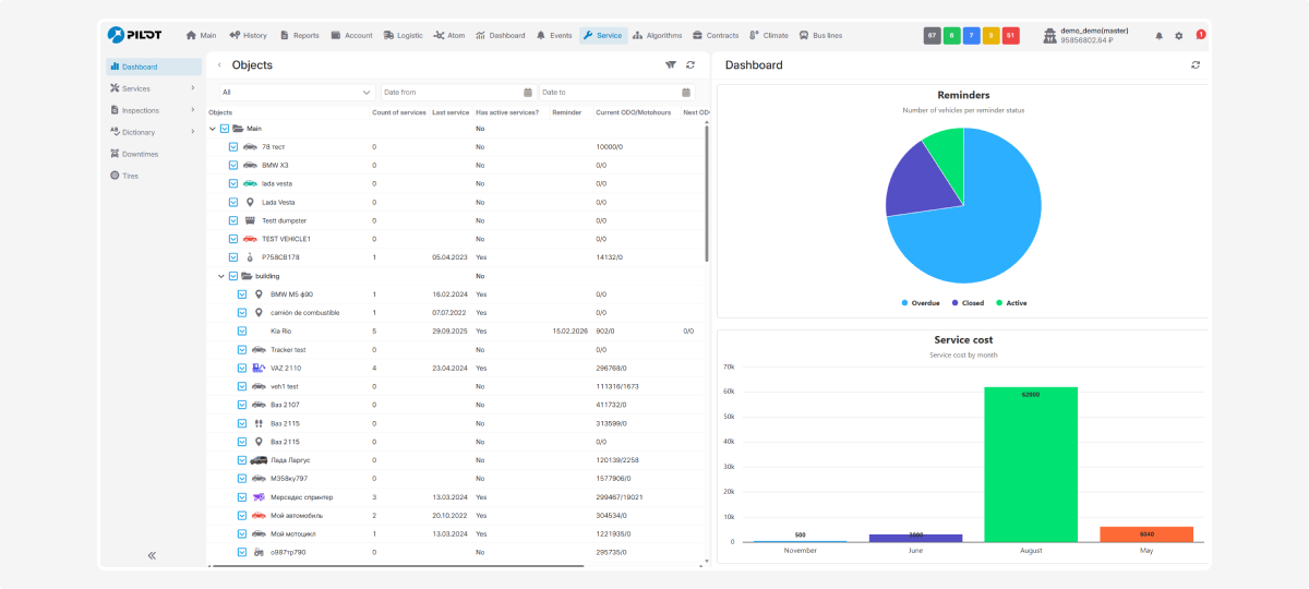 1. Configure a filter by object type — for example, view only passenger cars or special equipment