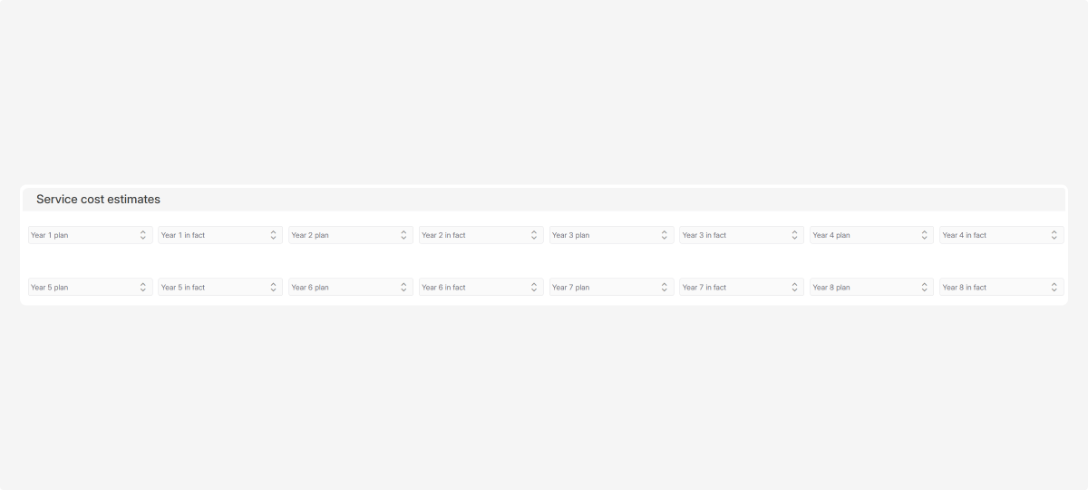 Specify planned vs. actual service costs by year to track whether expenses meet expectations.