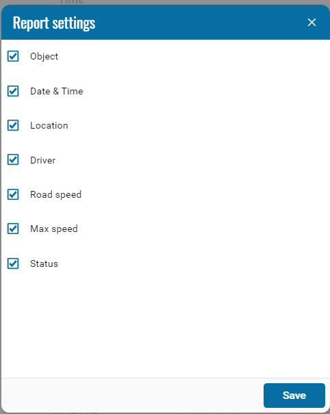 The report is designed to display information on the object, date and time of the trip, assigned driver, speed, etc.