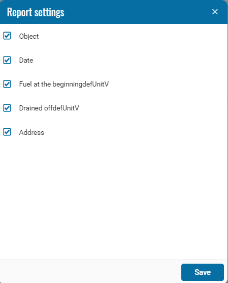 If necessary, you can disable certain parts of the report by clicking on the icon, when pressed, a menu opens where you can disable / enable certain fields.