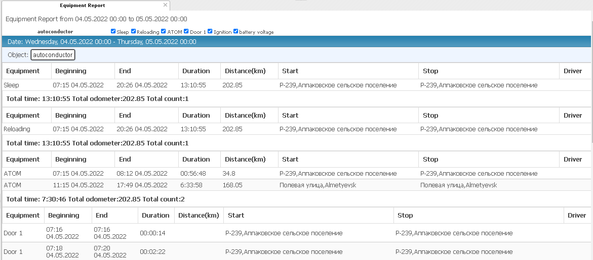 For the report to work correctly, all the necessary sensors of the connected equipment must be configured.