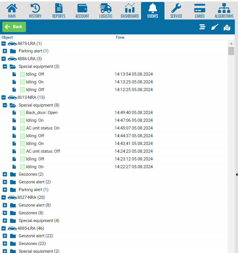 • Expand the required list of vehicle events.