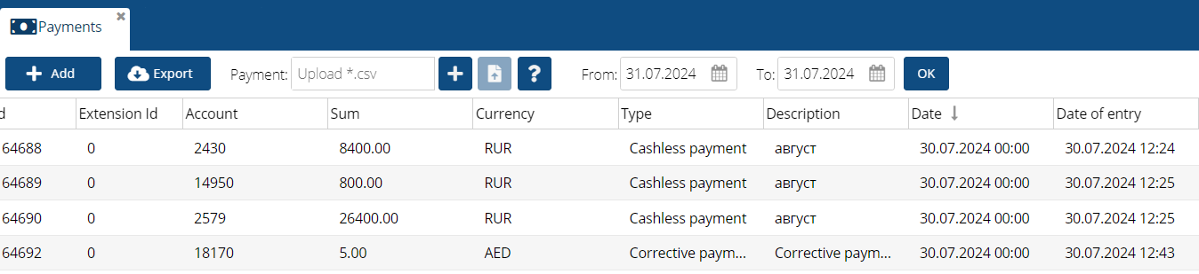 • External ID - external identification of the payment.