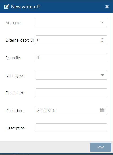 Window for entering manual write-off.