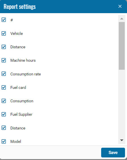 If necessary, you can disable certain parts of the report by clicking on the icon, when pressed, a menu opens where you can disable / enable certain fields.