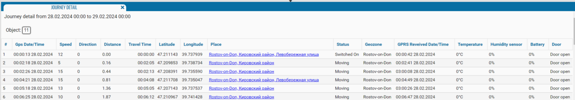 • Geofence - geofence of the trip for the reporting period;