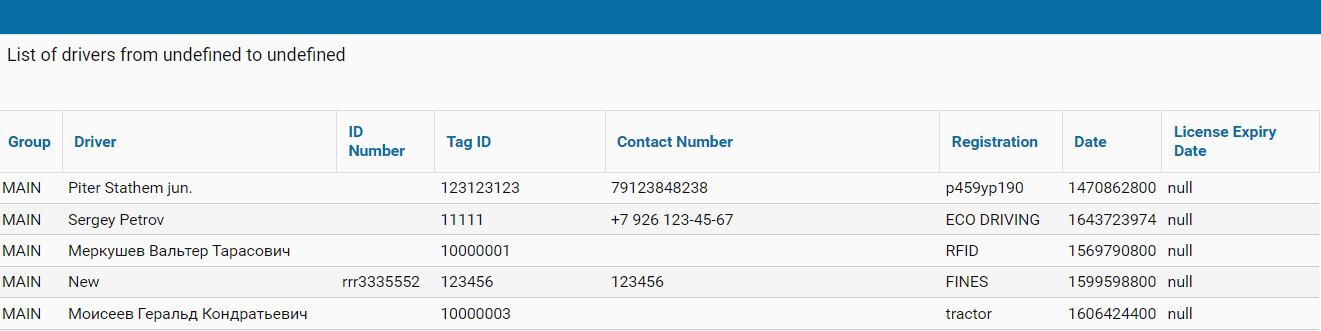 Driver - the driver assigned to the vehicle;