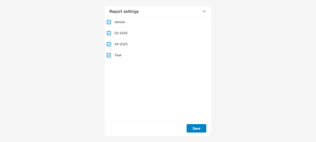 In the settings, select the necessary parameters that will be displayed in the report.