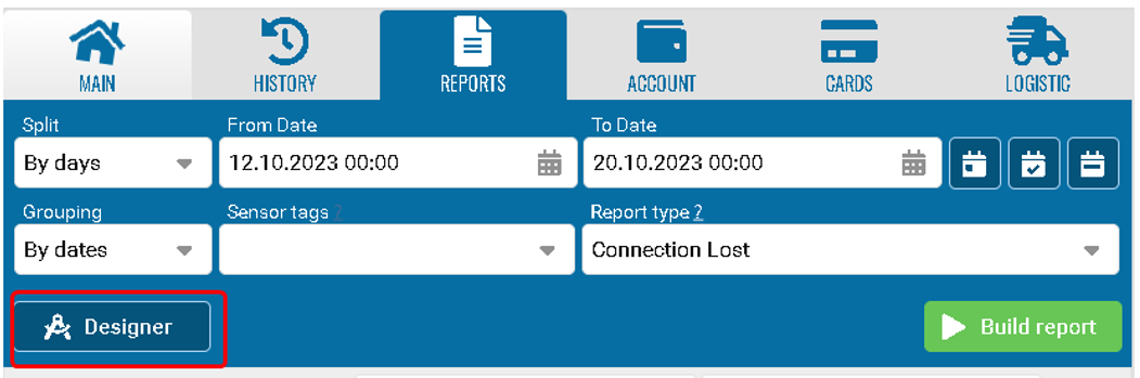 To open the designer window, click the Report Designer button in the Reports section.