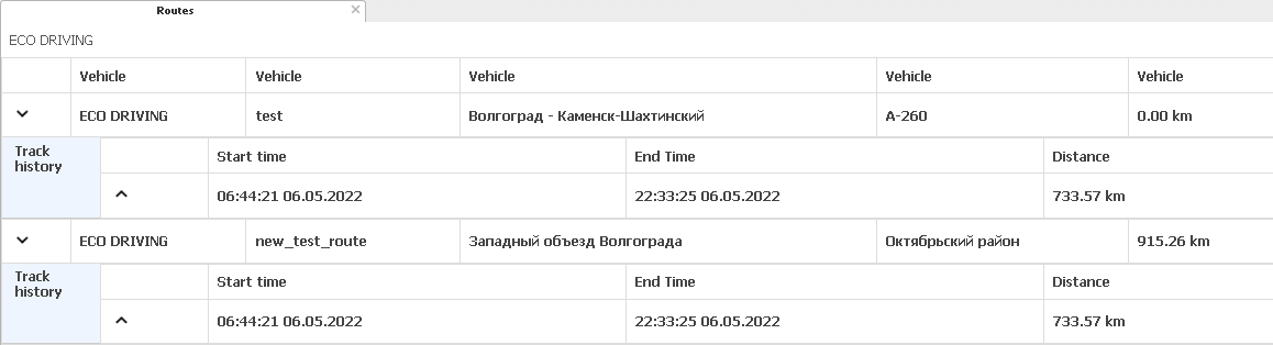 The report is designed to view the path of the object, taking into account the direction of movement relative to geographic coordinates, indicating the start, end and intermediate points, if any.