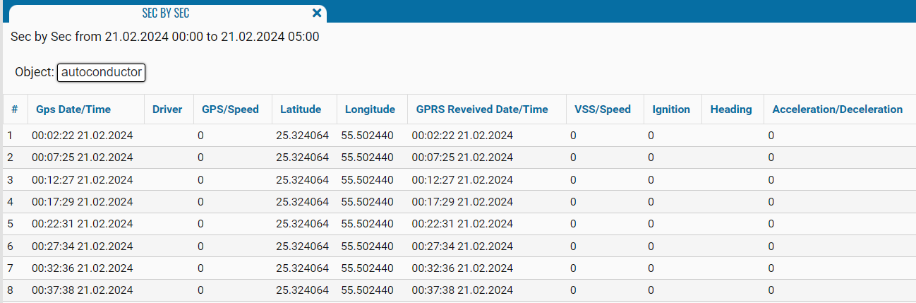 • GPS date/time - date and time for the specified period;