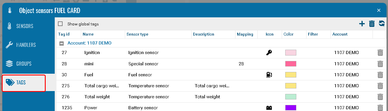 Sensor groups are configured in the object's sensors section and allow you to combine several sensors into one group to simplify reporting.