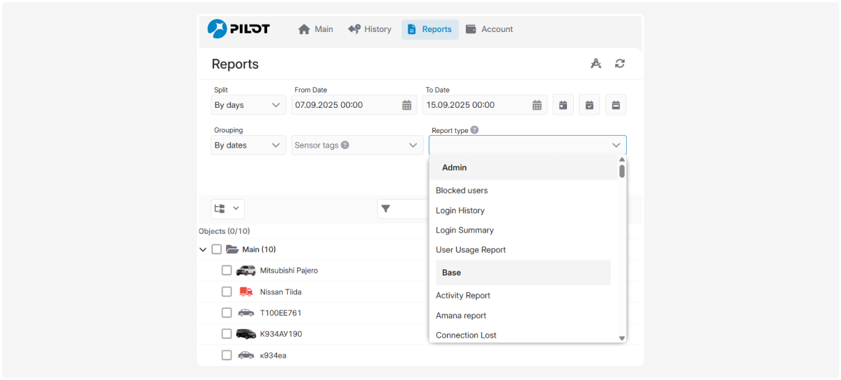 2. Select report types — check the boxes next to the required report names