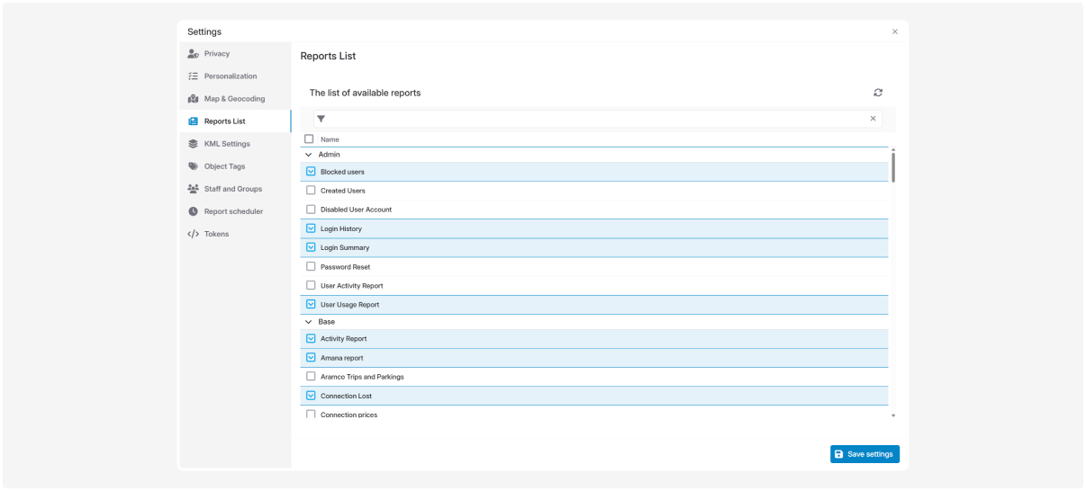 Select available reports in the admin panel2. Assign report permissions to specific users3. Configure how reports are displayed in the general list