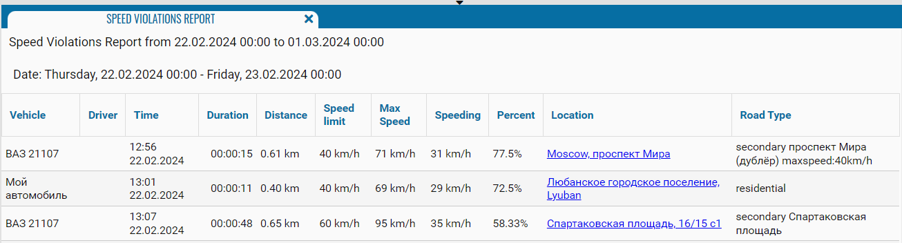 Speed Violations Report