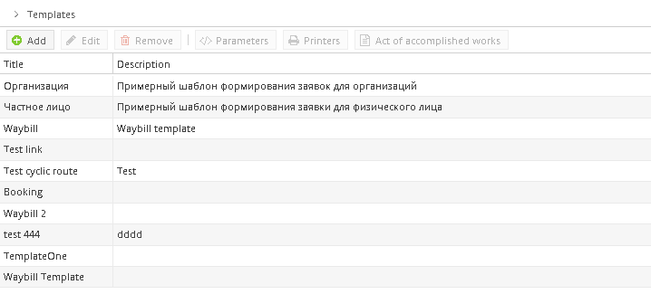 Template constructor tab, where you can create different types of templates, set field names, values, etc.