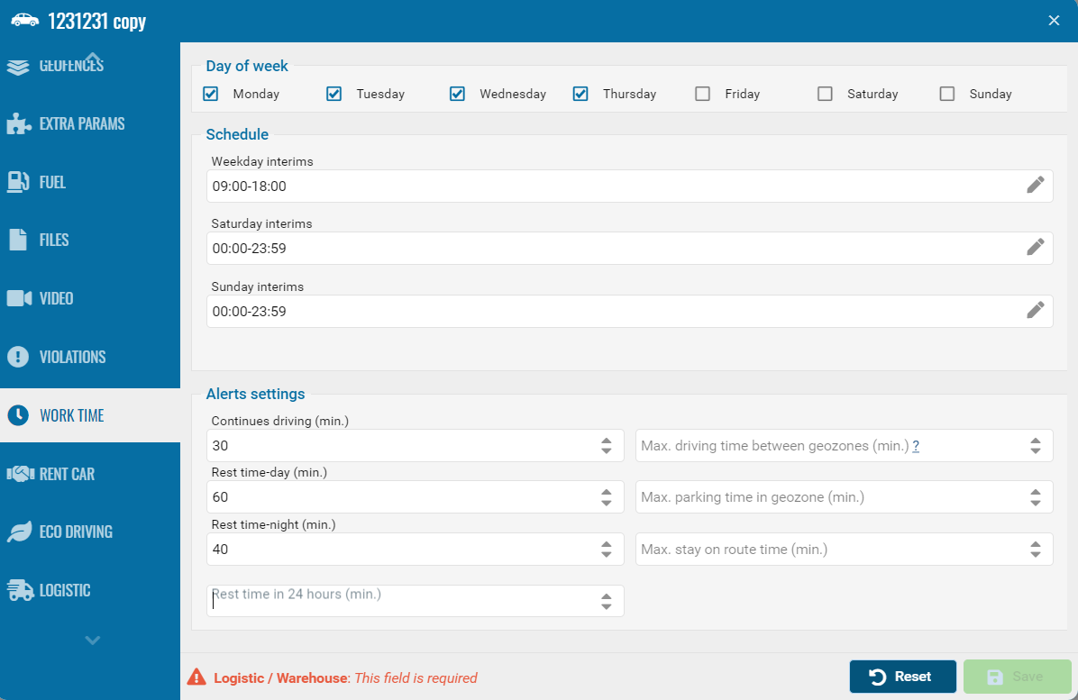 When adding new objects to the contract, these settings will be displayed automatically in the "Working hours" tab.