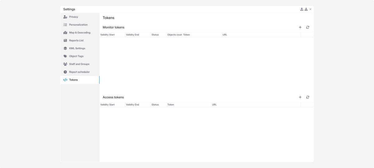 These tokens are used for monitoring objects without full access to your account: