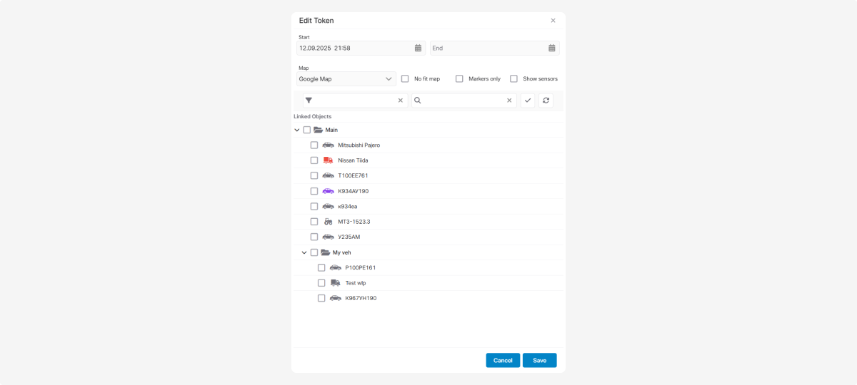 2. In the new window, specify the start and end date and time for the token. If you do not set an end date, the token will work permanently