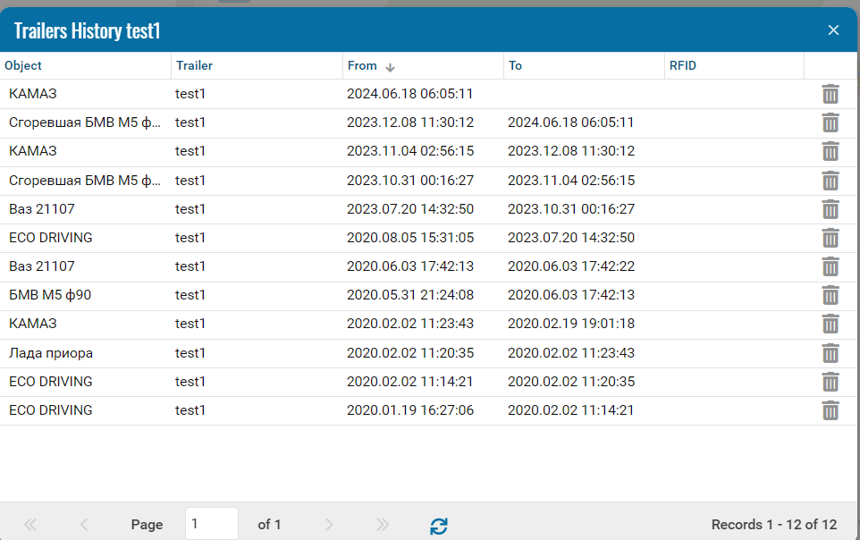 • Associated object - select from the drop-down list an object from the main tree of objects that will be considered associated with this trailer (not to which it will be attached, but from which it will receive data).