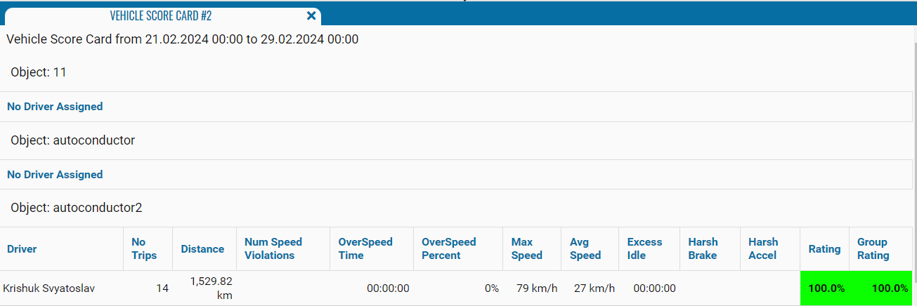 Group rating - rating based on the sum of sharp turns, braking and acceleration as a percentage;