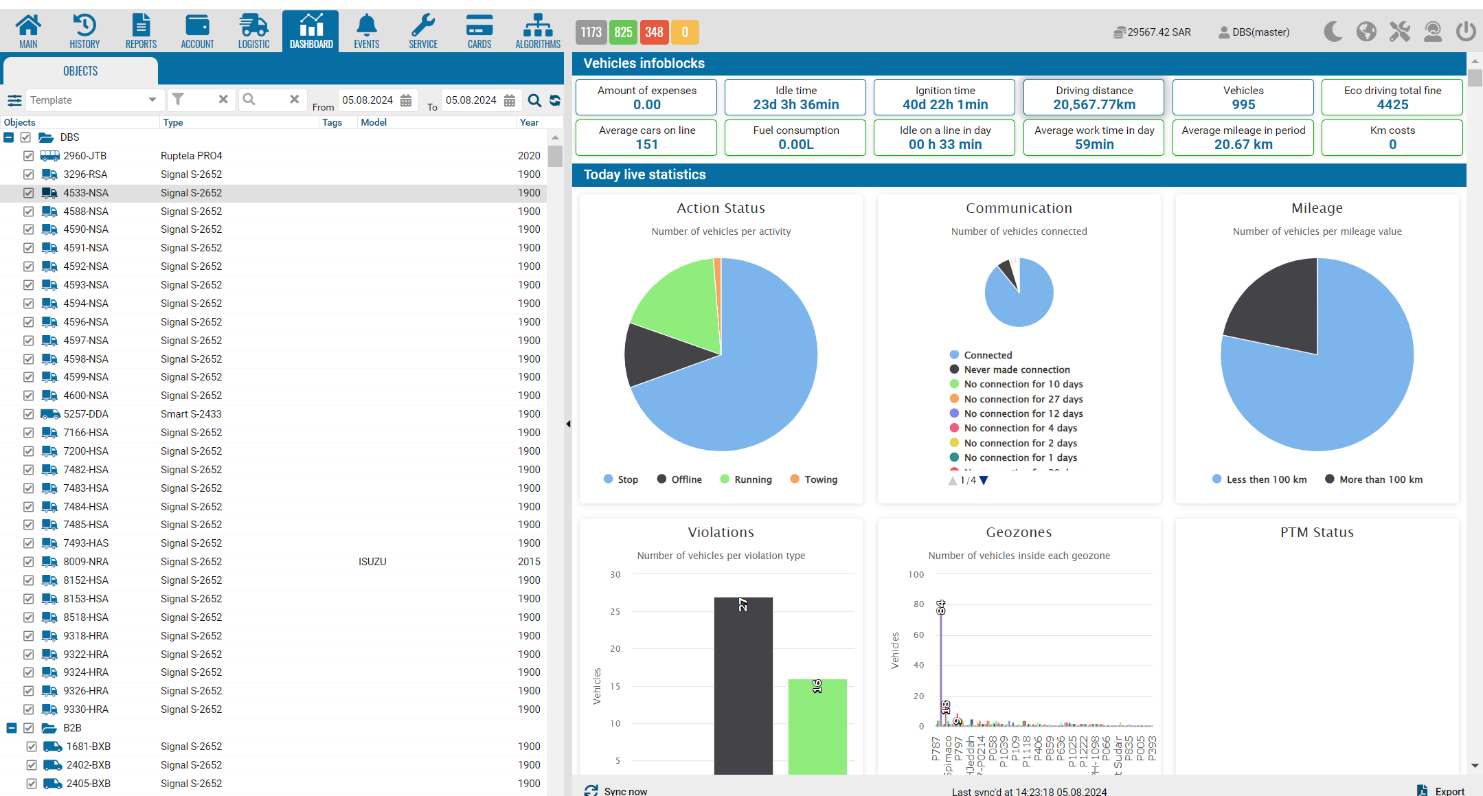 From the geozones block, a transition to the "Online" tab has been implemented with the selection of these vehicles in the tree of objects located in the specified geozones.