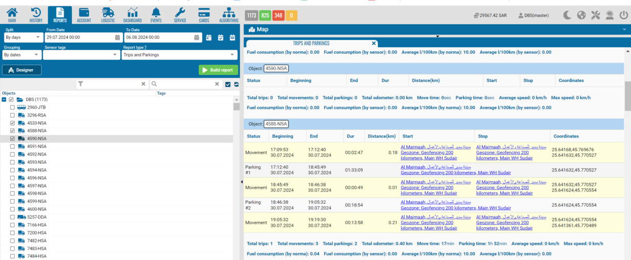 The reports will be generated in the regular "Reports" tab with all the details about duration, distance, address and other fields.