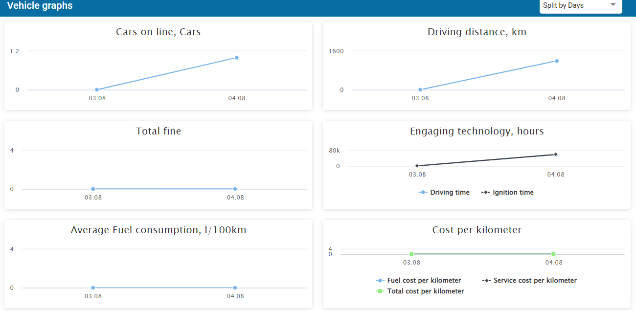 Important! Depending on the modules connected, for example Eco Driving, the PTM module or violations in Geofences, these values ​​will also be displayed in graphs on the corresponding topics.
