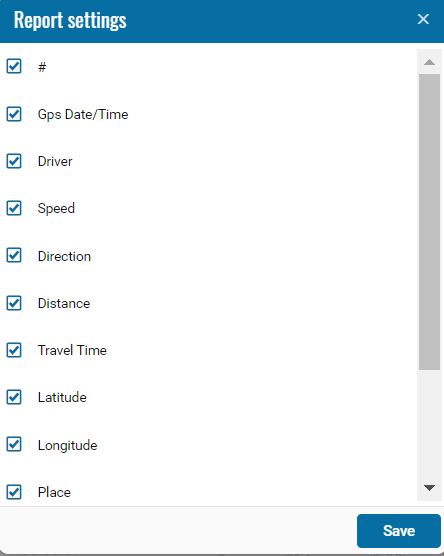 If necessary, you can disable certain parts of the report by clicking on the icon, when pressed, a menu opens where you can disable / enable certain fields.