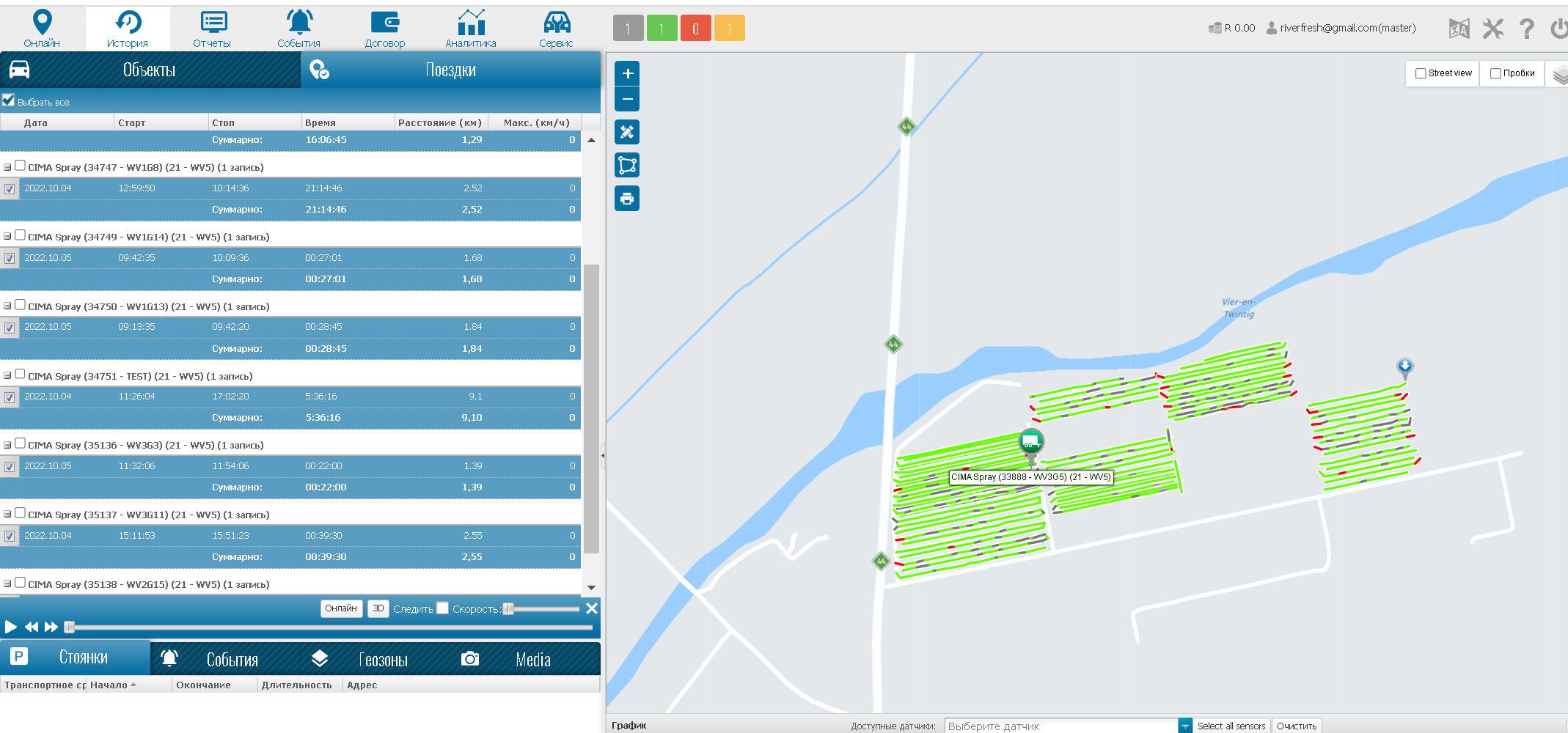 When the trips are completed, we can use the history module to play back the agricultural history data.