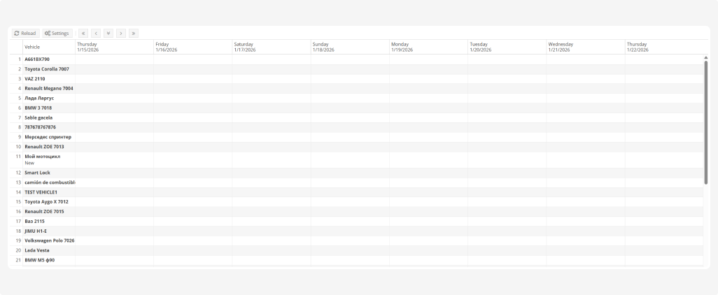 Calendar V2 is a scheduling view designed for managing tasks assigned to vehicles. In this version, you can clearly see which task is assigned to each vehicle on a specific day.