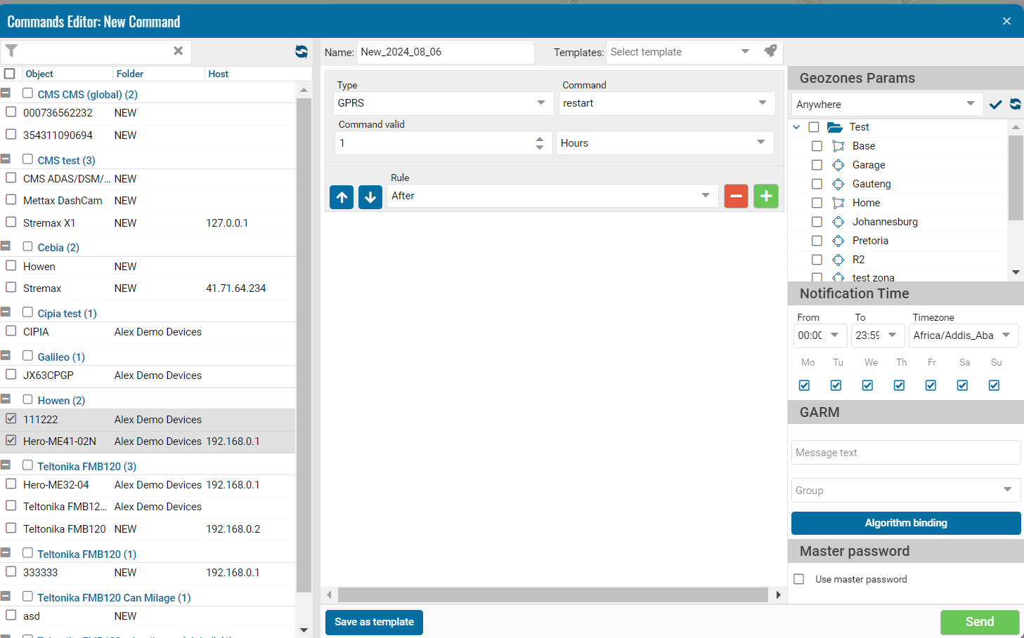 To see how to use the Commands module and send GPRS commands, watch the video “Using the Commands module: how to send GPRS commands” on YouTube.