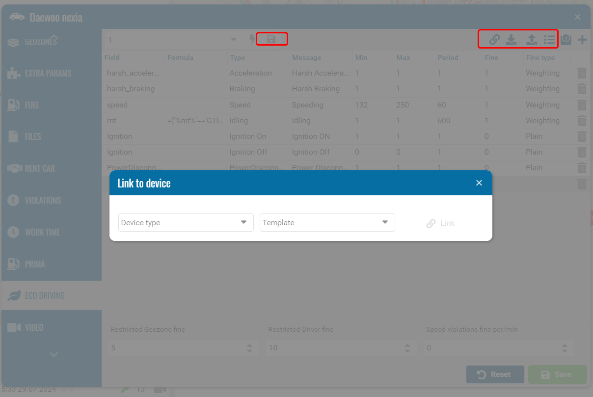 You can set up Eco Driving with weighting settings for your entire account using the sliders.