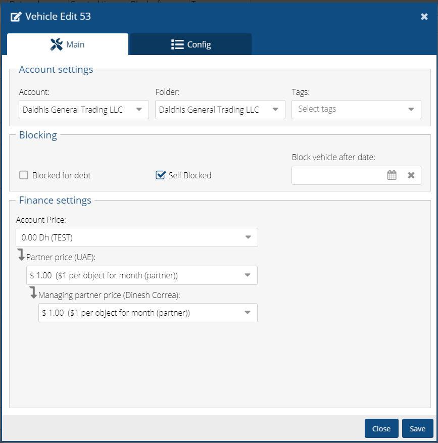 Edit The tab is used to enter various parameters for the vehicle. From this editor, you can transfer cars from one contract to another with all the entered parameters by selecting the Account field. Object Configuration Window