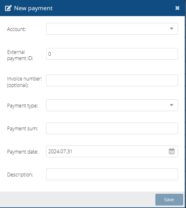 • External ID - external identification of the payment.