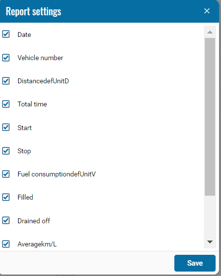• Fuel consumption - the amount of fuel consumed by the monitored object during the specified trip.