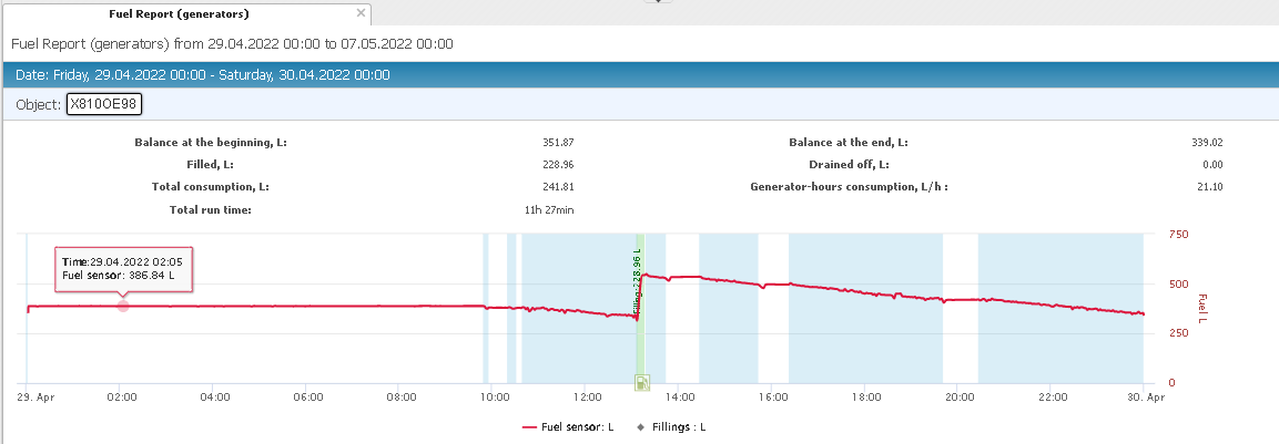 Dedicated graphical report showing Fuel Report data (generators).