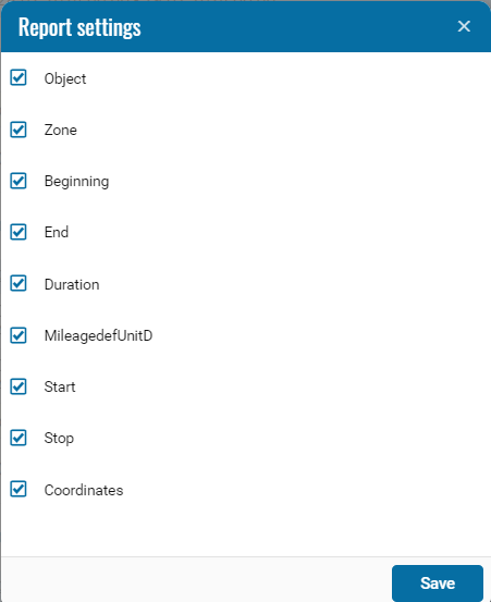The geofence downtime report is designed to monitor the downtime of monitoring objects in geographic zones. Available when connecting the additional Geofences module.