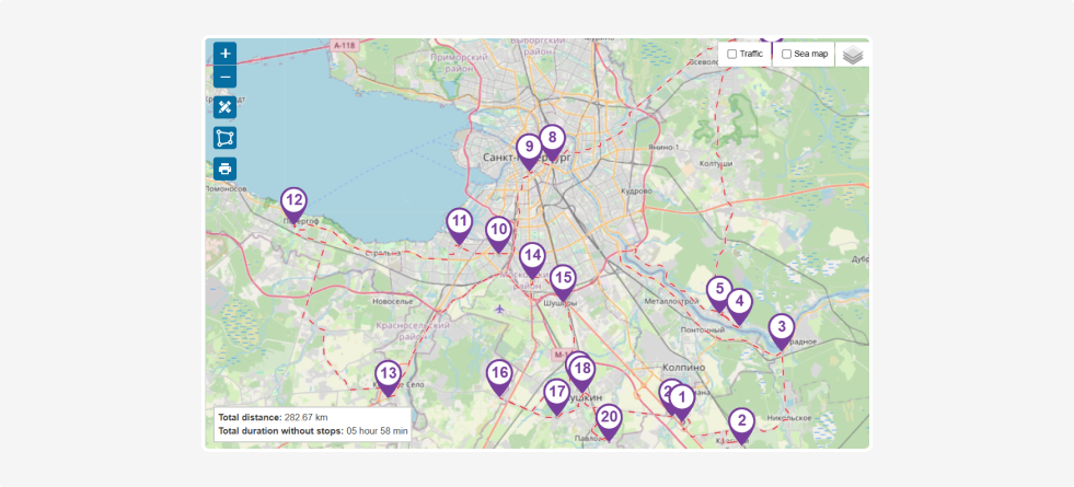 • Coordinates of Route Points — the geographical coordinates for each route stop.