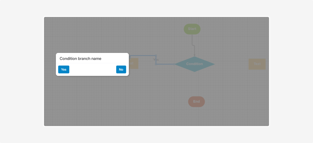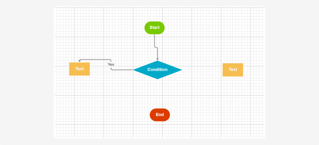 3. From the Condition block, add Text blocks and connect them using the Yes and No branches