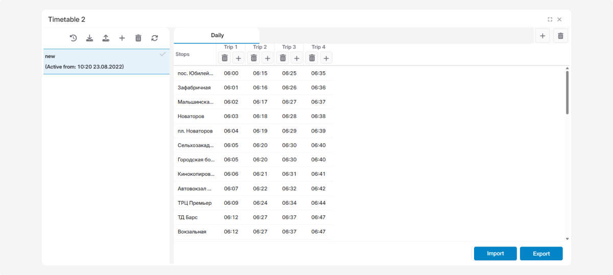 From here, you can add a new timetable or view existing ones.