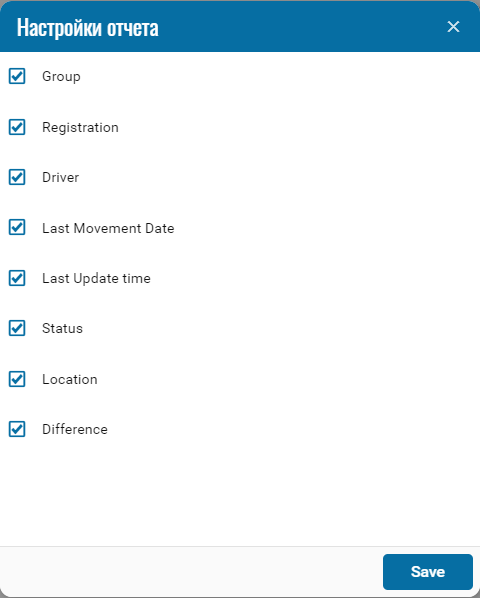 If necessary, you can disable certain parts of the report by clicking on the icon , when pressed, a menu opens where you can disable / enable certain fields.