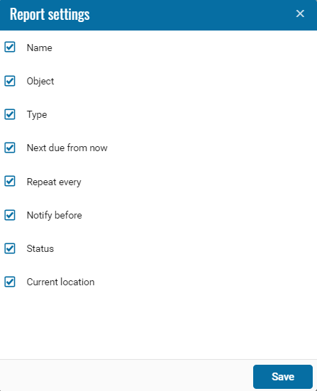 If necessary, you can disable certain parts of the report by clicking on the icon , when pressed, a menu opens where you can disable / enable certain fields.