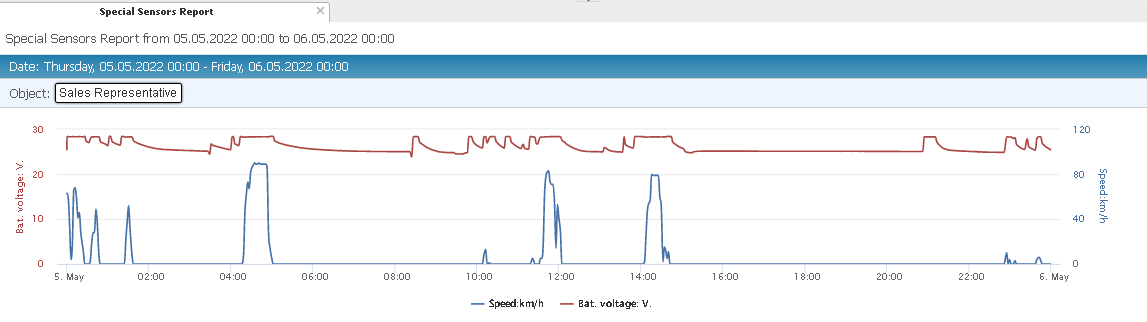 Special Sensors Report The report of special sensors is designed to display the work of the graph of sensors for the selected period of time.